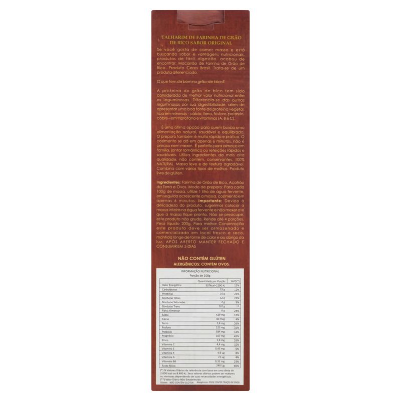 Massa de Talharim Ceres Brasil Grão de Bico sem Glúten Low Carb Original 200g