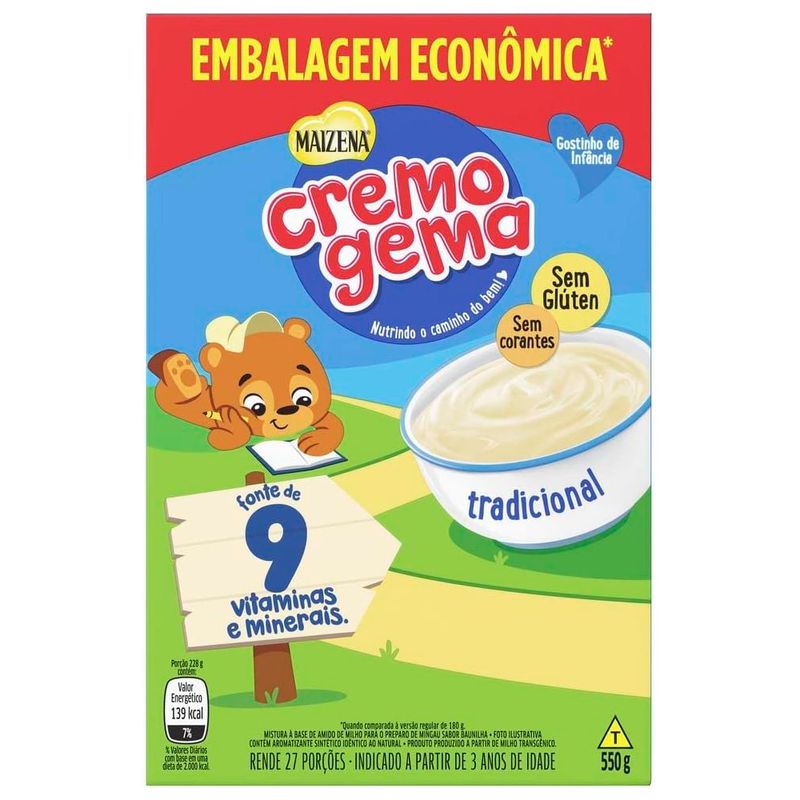 Mingau Maizena Cremogema Tradicional – Sabor e Nutrição para os Pequenos Momentos de carinho pelo seu bebê O mingau Maizena Cremogema Tradicional é a escolha ideal para as primeiras refeições do seu pequeno. Em uma embalagem econômica de 550g, esse alimento infantil proporciona um sabor inconfundível, sendo perfeito para o dia a dia na introdução alimentar ou como uma opção saudável e prática nas refeições. Ingredientes e benefícios nesta fase especial O mingau é elaborado com ingredientes cuidadosamente selecionados, garantindo um produto de qualidade que atende às necessidades nutricionais das crianças. Sua composição rica e saborosa é ideal para introduzir novas texturas e sabores aos pequenos, contribuindo para momentos de descoberta e prazer na hora de comer. Além disso, ele é fácil de preparar, oferecendo praticidade para os pais que buscam uma refeição rápida e nutritiva. Versatilidade nas refeições O Mingau Maizena Cremogema Tradicional pode ser servido de diversas maneiras, seja puro ou com a adição de frutas, tornando as refeições ainda mais saborosas e atraentes. Essa versatilidade permite que os pais personalizem o mingau conforme as preferências do seu filho, além de fomentar a criatividade na cozinha durante esse importante processo de alimentação. A qualidade Maizena A marca Maizena é sinônimo de confiança e tradição, garantindo que o mingau que chega à sua mesa é fruto de anos de experiência no segmento alimentício. Com um compromisso contínuo com a qualidade e o bem-estar das crianças, a Maizena oferece produtos que contribuem para um desenvolvimento saudável e saboroso, tornando as refeições momentos especiais e inesquecíveis.