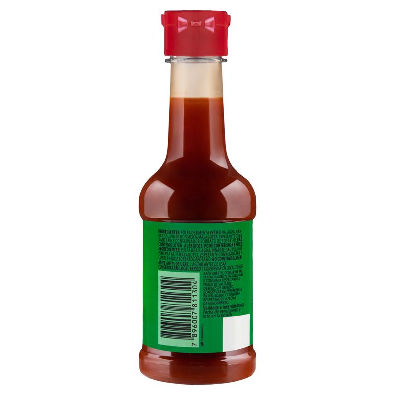 - Ingredientes: Água, pimenta, sal, vinagre e especiarias.
