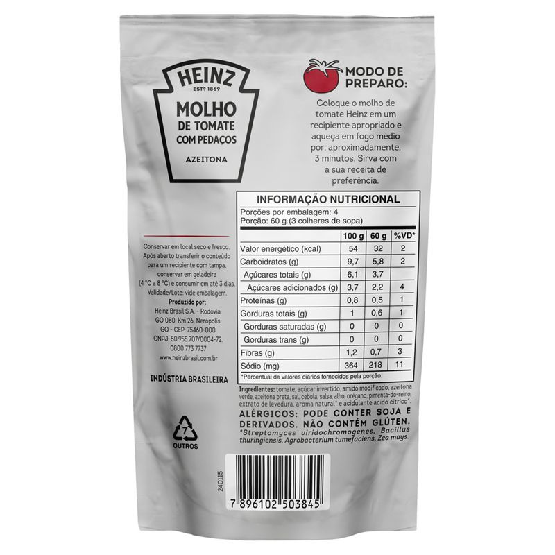 Molho de Tomate Heinz com Azeitona 240g – Sabor Autêntico para suas Receitas