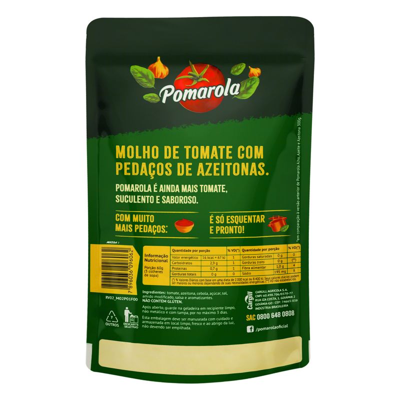 Molho de Tomate Pomarola Sabores Azeitona Sachê 300g
