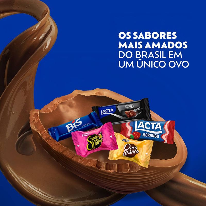 Variedade que encanta O Ovo de Páscoa Lacta não é apenas um chocolate, mas uma verdadeira celebração da tradição. Esse ovo é recheado com pedacinhos dos famosos bombons Lacta, que acrescentam uma textura macia e um sabor irresistível. Ao abrir o ovo, cada pedaço revela uma explosão de doçura e cremosidade, tornando a hora da sobremesa um momento de satisfação para todos os paladares.