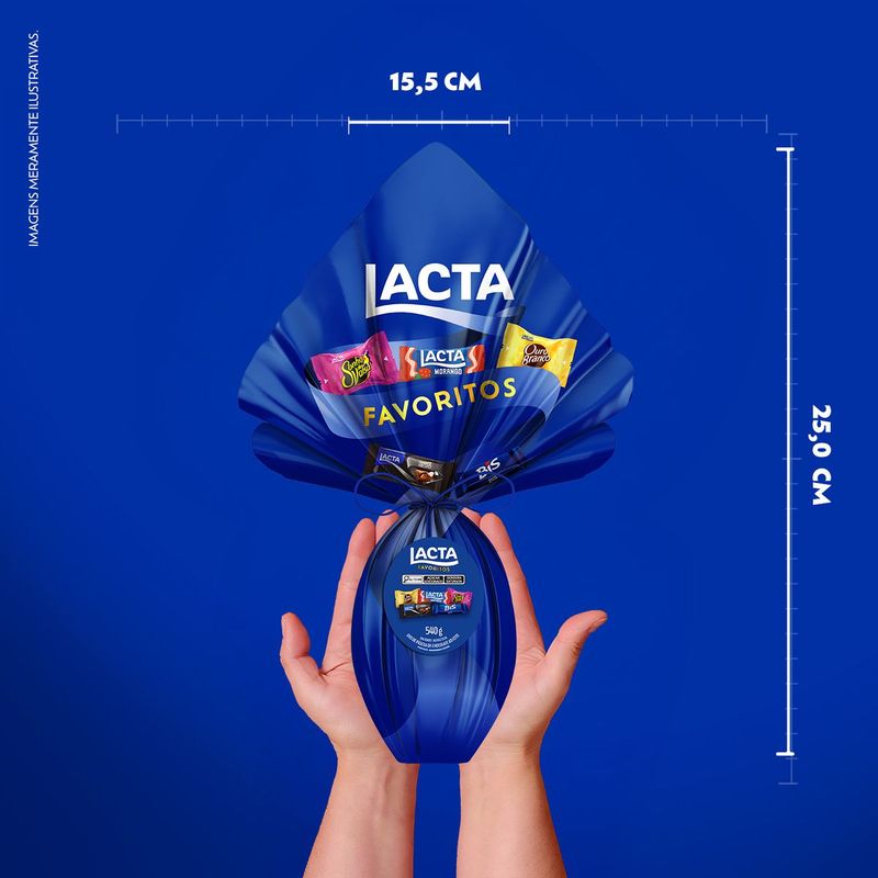 Ideal para presentear Com sua embalagem atraente e visual convidativo, o Ovo de Páscoa Lacta ao Leite Favoritos se torna uma excelente opção de presente. Seja para crianças ou adultos, é um mimo que combina sabor e carinho, trazendo alegria em cada pedaço. Sua generosa gramagem de 540g garante que o presenteado possa desfrutar por mais tempo dessa delícia, criando memórias afetuosas que vão além do chocolate.