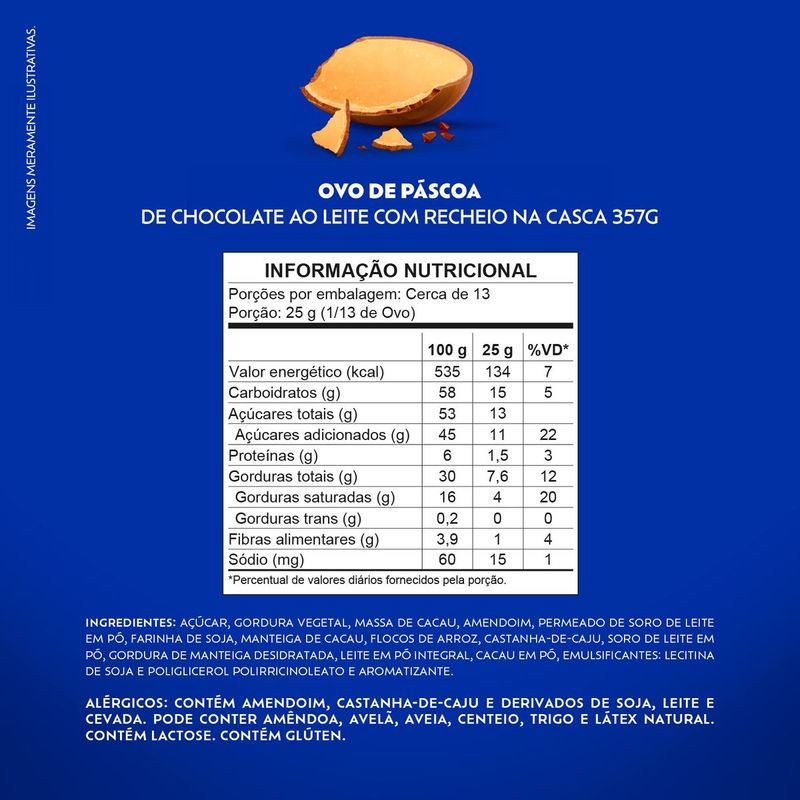 Compre agora o Ovo de Páscoa Lacta Sonho de Valsa 357g. É a combinação perfeita de um recheio cremoso de amendoim e castanha de caju, com a crocância do wafer e sua deliciosa camada sabor chocolate. Perfeito para aproveitar com toda a família, ou para presentear parentes e amigos. Compre já! Embalagem individual 357g. Tabela Nutricional e Alergênicos: Veja a tabela nutricional e ingredientes nas imagens. Produto com Alto Teor de Açúcar Adicionado e Gordura Saturada.
