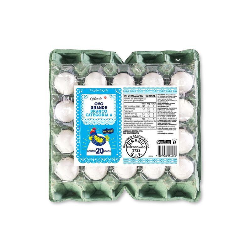 Ovos Branco Cuisine&Co Grande com 20 Unidades
