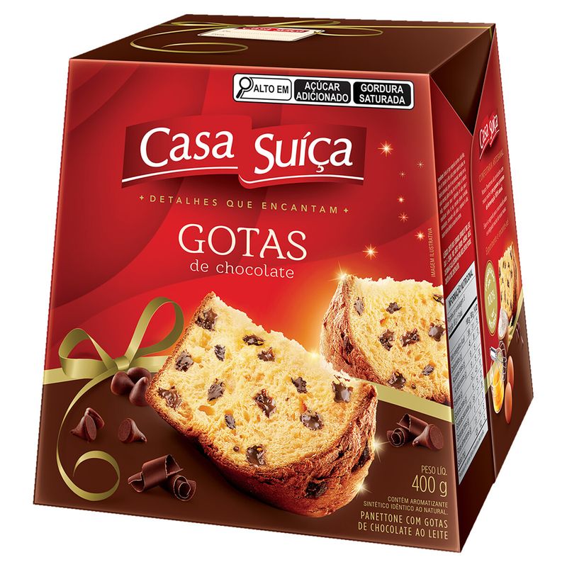 Panettone Casa Suíça com Gotas de Chocolate ao Leite Caixa 400g