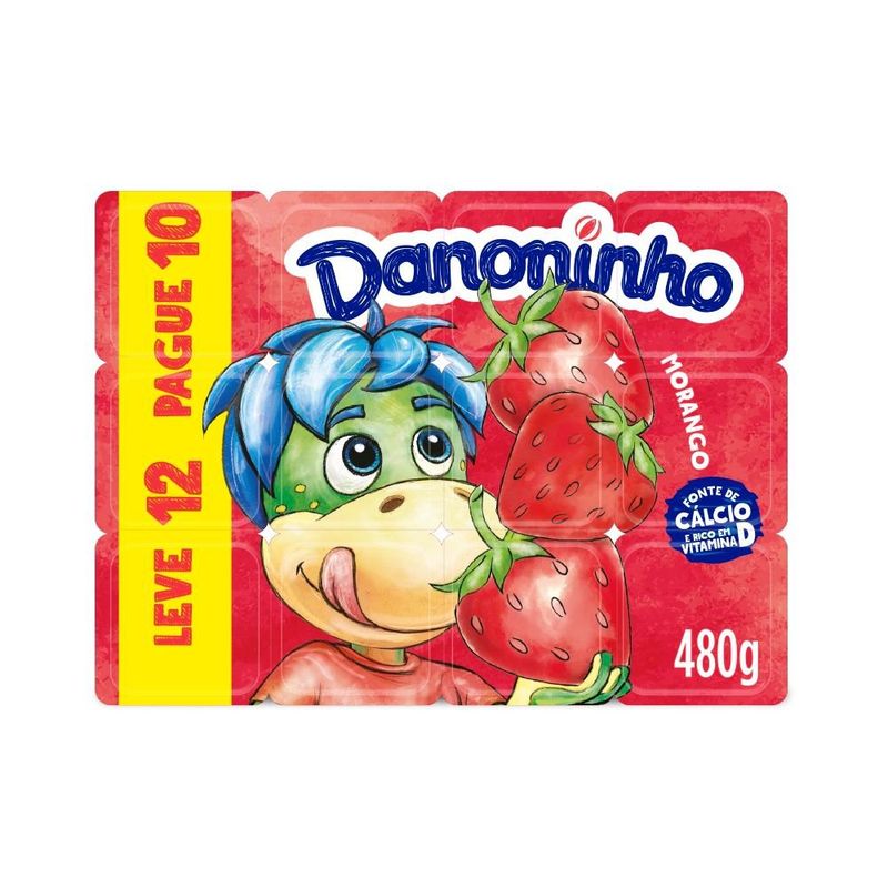 Danoninho tem sido parceiro dos pais na jornada de crescimento das crianças há 50 anos, acompanhando desde os alimentos que elas consomem até as ações que elas realizam! O Danoninho Petit Suisse Morango 480g mantém o formato e sabor clássico de Danoninho! É fonte de Cálcio e Vitamina D, que ajudam o seu filho a crescer fortinho*. Saboroso e nutritivo, vem em uma embalagem prática e divertida, apresentando o personagem Dino. Ele é o parceiro das aventuras e ""GIGANTICES"" dos pequenos e também inspira a reutilização dos copinhos em brincadeiras do dia a dia, além de ensinar a importância de reciclar os potinhos, promove práticas sustentáveis desde cedo. Pode ser consumido no lanchinho da manhã ou da tarde! Foi desenvolvido com nutrientes como Cálcio e Vitamina D que contribuem para o crescimento dos pequenos, acompanhando-os em suas aventuras diárias. *Danoninho é fonte de cálcio e rico em vitamina D, nutrientes que auxiliam na formação e manutenção de ossos fortes para um crescimento saudável e deve estar inserido dentro de uma alimentação variada e equilibrada e de um estilo de vida saudável. CARACTERÍSTICAS • Danoninho Petit Suisse 480g sabor Morango. • Ideal para o lanchinho da manhã ou da tarde. • Rico em Vitamina D e Cálcio que ajudam na formação e manutenção de ossos saudáveis. • Não contém glúten. INGREDIENTES Leite desnatado, preparado de fruta (água, frutose, cálcio, polpa de morango, amido modificado, vitamina D, corante natural carmim, aromatizante, acidulante ácido cítrico, espessantes carragena, carboximetilcelulose e goma xantana e conservador sorbato de potássio), xarope de açúcar, creme, frutose, fermento lácteo, quimosina e espessantes carboximetilcelulose e goma guar *CONTÉM LACTOSE. NÃO CONTÉM GLÚTEN. ALÉRGICOS: CONTÉM LEITE E DERIVADOS.