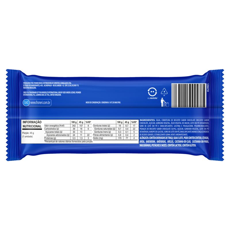 Picolé Oreo Baunilha com Biscoito de Chocolate 45g