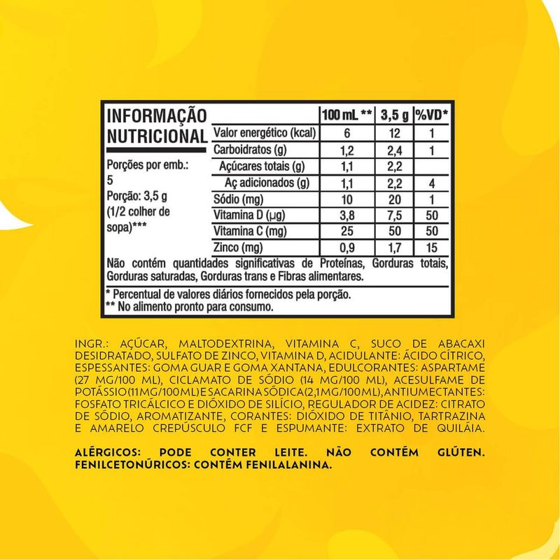 Tang é uma marca reconhecida pela qualidade de seus produtos, oferecendo um sabor autêntico e uma experiência refrescante. O refresco em pó abacaxi é feito com ingredientes selecionados, garantindo que cada gole seja uma explosão de sabor. É uma bebida que não contém conservantes, permitindo que você aproveite o melhor do abacaxi de forma prática e saborosa.