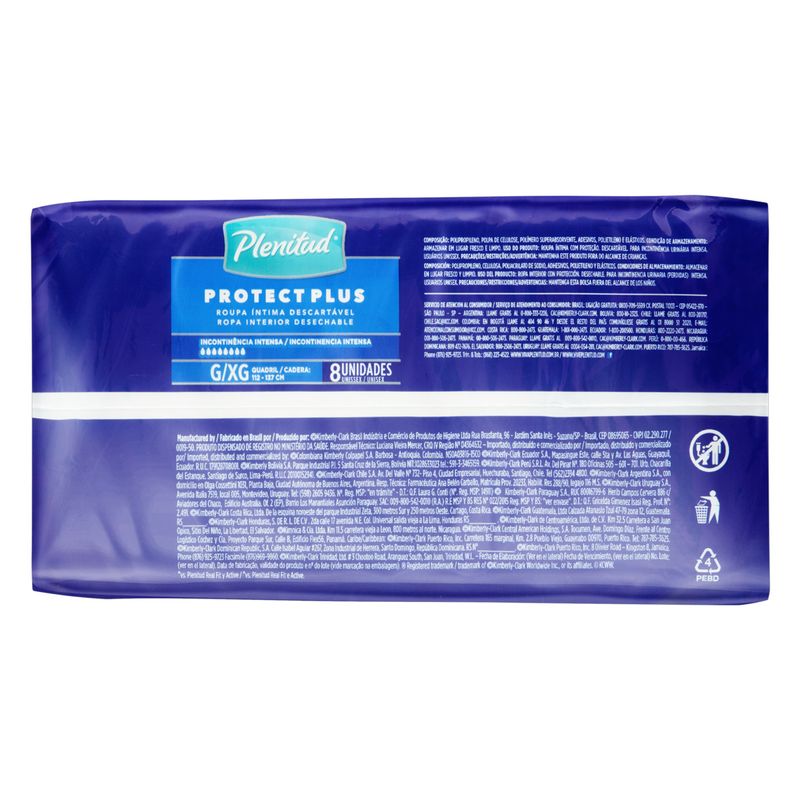 Roupa Íntima Descartável Plenitud Protect Plus G/ XG com 8 Unid