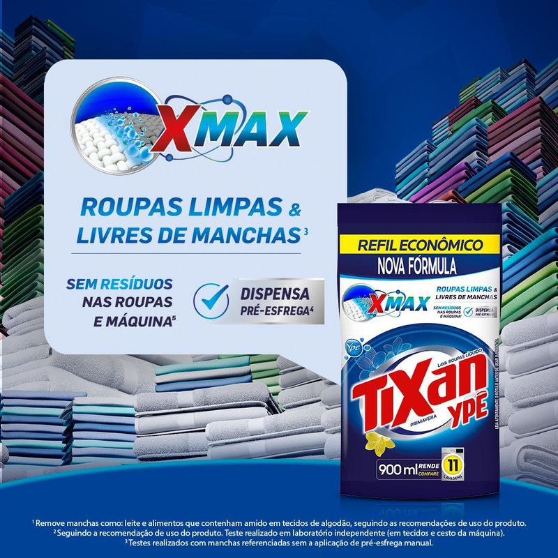 Lava Roupas Tixan Ypê Primavera com tecnologia ODOR FREE, combate os maus odores¹ deixando as roupas gostosas de usar; com Tecnologia UP (Ultra Pure) de Perfumação²; explosão de frescor da lavanda. Tixan Ypê Primavera, roupas limpas, livres de manchas³ e com perfume incrível!