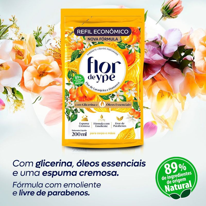 Disponível em 5 versões: Rosas Brancas e Avelã; Flor de Maçã e Framboesa; Flor de Laranjeira e Damasco; Frésia e Pêssego; Água de Coco e Alecrim Com óleos essenciais e glicerina; Espuma cremosa e fórmula com emolientes, que contribuem para a proteção da pele Para corpo e mãos Testado dermatologicamente Livre de parabenos