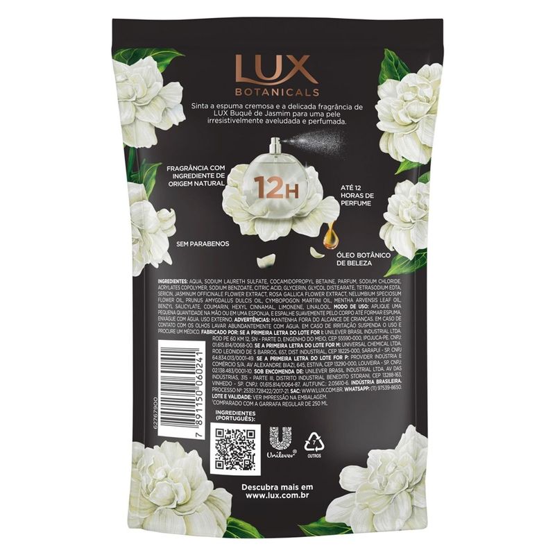 Os sabonetes líquidos Lux são formulados de forma a proporcionar uma experiência do seu banho um momento único, especial e relaxante. Com fragrâncias inspiradas na natureza, Lux valoriza o momento do banho, para te entregar uma experiência ainda melhor. Lux também possui óleos hidraflorais, uma mistura de ingredientes de cuidado com a pele, extraídos da natureza, que adicionados à formulação ajudam a sua pele a permanecer macia e flexível. Aproveite um banho ainda mais intenso com Lux. Além disso, a linha de sabonetes líquidos de Lux apresenta um pH adequado à sua pele, promovendo uma limpeza eficaz e cuidado com a sua pele. Para uma melhor experiência de uso e rendimento do produto, sugerimos as seguintes formas de uso: Apenas um pouco do produto na esponja é capaz de lavar o corpo inteiro; Banho com esponja: Colocar uma pequena quantidade de produto na esponja (5ml) e passar suavemente pelo corpo; Banho sem esponja: Aplicar uma pequena quantidade de produto nas mãos, fora da água, fazer a espuma e aplicar no corpo. Experimente também o sabonete em barra Buquê de Jasmim, disponível nos tamanhos 85g e 125g. Conheça outros sabonetes líquidos Lux: Flor de Verbena, Orquídea Negra, Rosas Francesas, Flor de Lótus e Lavanda. Todas os sabonetes Lux são exclusivamente formulados para uma experiência maravilhosa no banho, através dos exclusivos óleos hidraflorais e da glicerina. Mude o toque da sua pele com os sabonetes líquido Lux, disponíveis em 6 incríveis variantes.