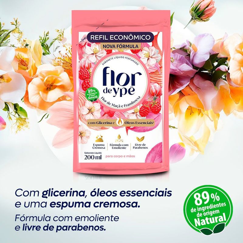 Disponível em 5 versões: Rosas Brancas e Avelã; Flor de Maçã e Framboesa; Flor de Laranjeira e Damasco; Frésia e Pêssego; Água de Coco e Alecrim Com óleos essenciais e glicerina; Espuma cremosa e fórmula com emolientes, que contribuem para a proteção da pele Para corpo e mãos Testado dermatologicamente Livre de parabenos