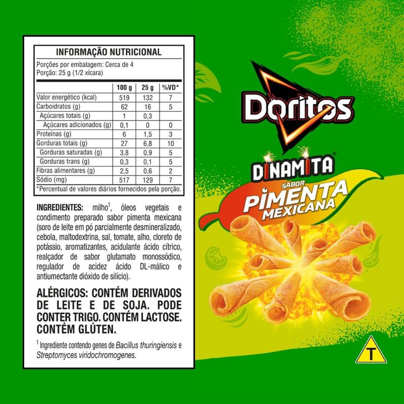 Embalações generosas e prática de consumo Com um peso de 110g, cada pacote é ideal para um momento de descontração. Seja para uma maratona de filmes, um piquenique no parque ou um encontro casual, o formato dos Doritos Dinamita facilita o consumo e torna o compartilhamento ainda mais divertido. É um petisco que combina versatilidade e praticidade, pronto para ser degustado a qualquer hora.