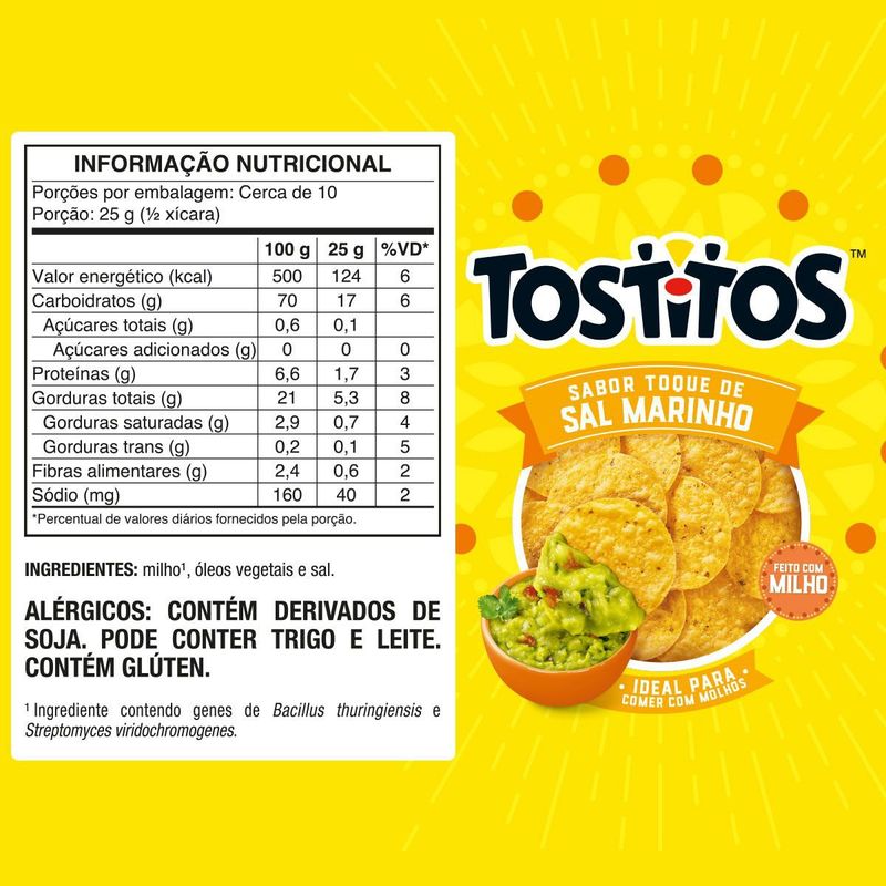 Chegou Tostitos, salgadinhos de tortilha feito de milho com formato, textura e sabores ideais para comer com molho, patês e pastinhas e criar suas próprias receitas! Você sempre tem com o que combinar o seu Tostitos! Tostitos está disponível no sabor Toque de Sal Marinho e sabor Toque de Pimenta Mexicana.