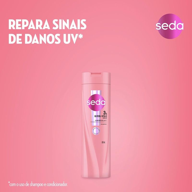 Com o Shampoo Seda Luminous UV, seus cabelos estarão sempre prontos para brilhar, protegidos dos danos causados pela exposição ao sol e com a leveza que você merece.