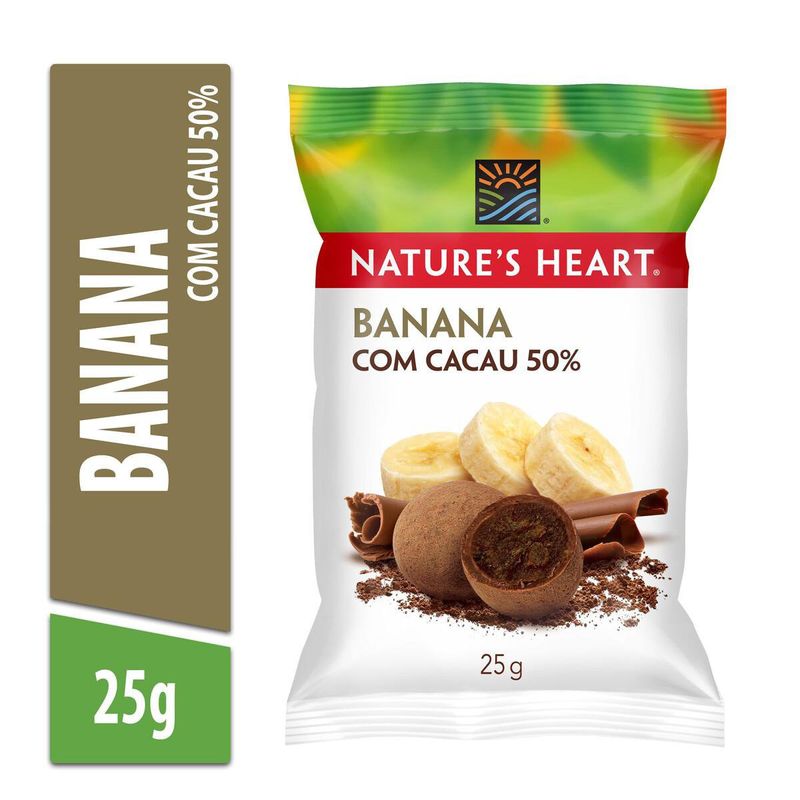 NATURE’S HEART®Snack de Banana com Cacau é uma ótima opção de lanche para o dia.Feito com chocolate amargo, açúcar, banana e cacau em pó.Queremos semear hábitos mais saudáveis e fazer bem a você e ao mundo. Por isso, em seus produtos, Nature's Heart® seleciona os melhores ingredientes e oferece uma linha de produtos com ingredientes naturais e nutritivos. Temos a praticidade que você precisa e todo o sabor que merece para ir ainda mais longe.NATURE’S HEART®: natural como viver bem.