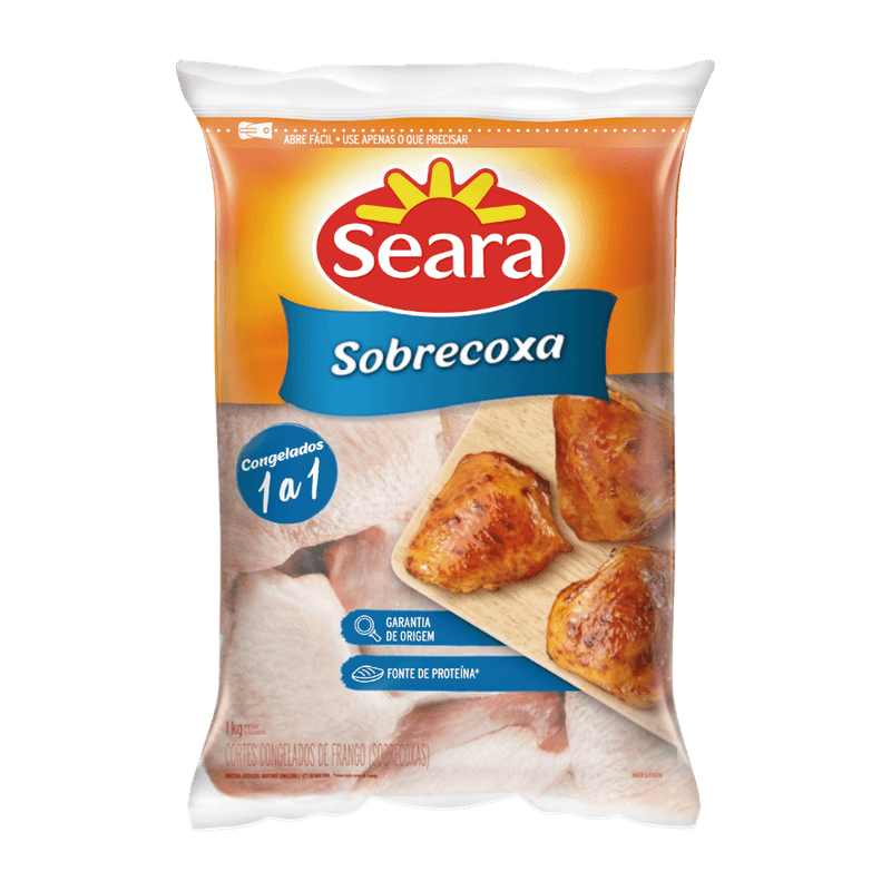 As sobrecoxas são congeladas 1 a 1 e vem em um saco com zip abre-fecha, para descongelar somente o que precisar e retornar a embalagem ao freezer vedada e com segurança! As sobrecoxas são congeladas 1 a 1 e vem em um saco com zip abre-fecha, para descongelar somente o que precisar e retornar a embalagem ao freezer vedada e com segurança! Provenientes de frango Seara sem uso de hormônios, como estabelece a legislação brasileira, além de muito suculentas, podem ser preparadas de diversas formas.