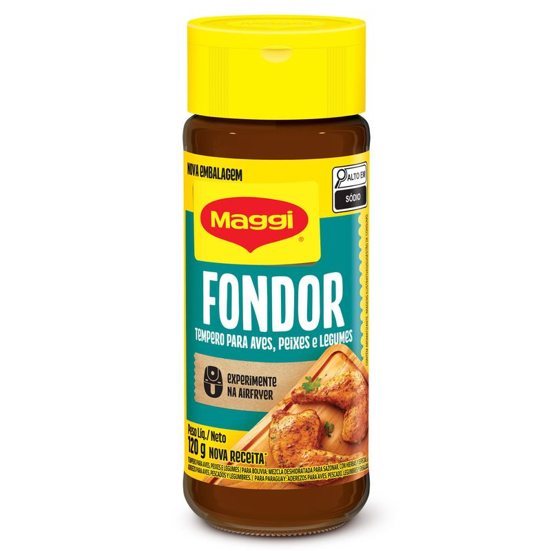 O Tempero Fondor MAGGI Aves, Peixes, Legumes e Saladas 120g é o tempero ideal para dar um toque especial e saboroso a diversos pratos. Desenvolvido para realçar o sabor de aves, peixes, legumes e até saladas, esse tempero é perfeito para quem busca praticidade e um resultado delicioso em cada refeição. Sua fórmula balanceada, com realçadores de sabor, transforma o simples em algo irresistível. Com a embalagem prática de 120g em vidro, o Tempero Fondor MAGGI é ideal para o uso diário, agregando sabor e praticidade à sua cozinha. Deixe suas receitas ainda mais saborosas com o sabor único que só a MAGGI pode oferecer!
