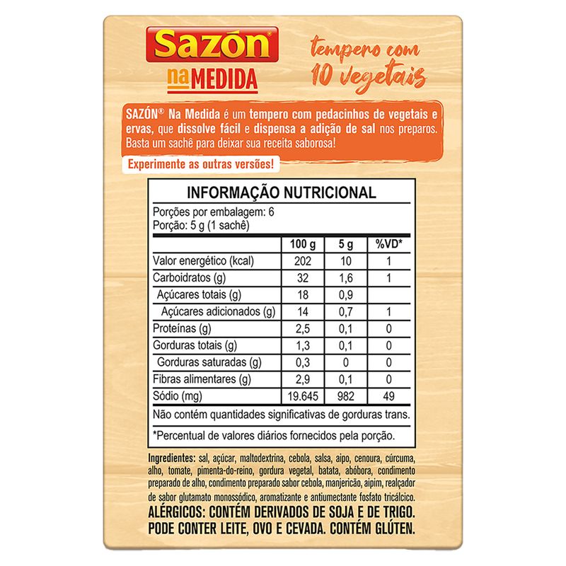 Tempero Sazón na Medida com 10 Vegetais Caixa 30g com 6 Unidades