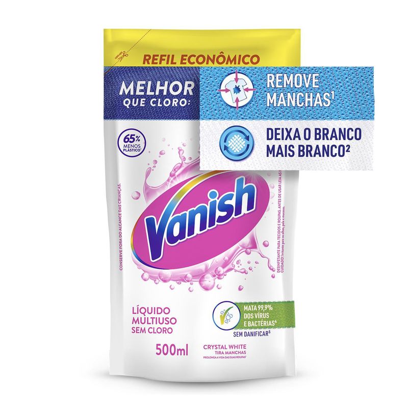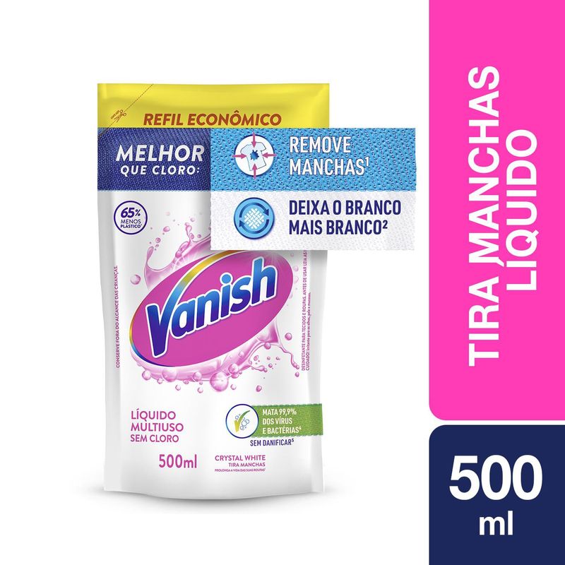 LimpezaRoupaTira ManchaTira Manchas Vanish Líquido Crystal White para roupas brancas RefilEconômico 500ml