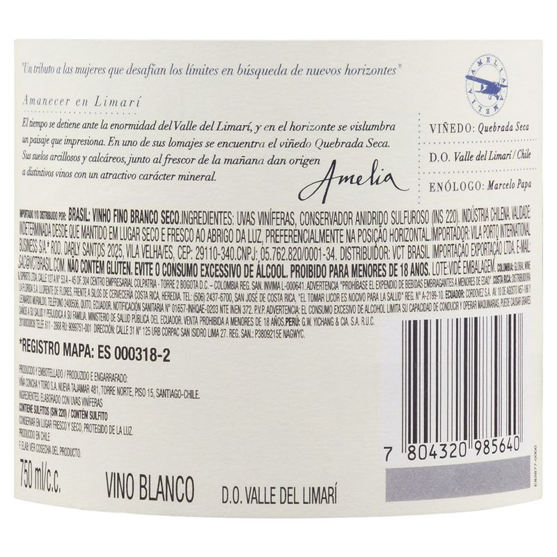 Vinho Chileno Amelia Chardonnay Valle del Limarí Seco Branco 750ml