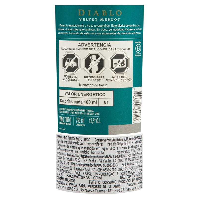 Vinho Chi Diablo Velvet Merlot TT 750ml – Sabor e Sofisticação em Cada Gole