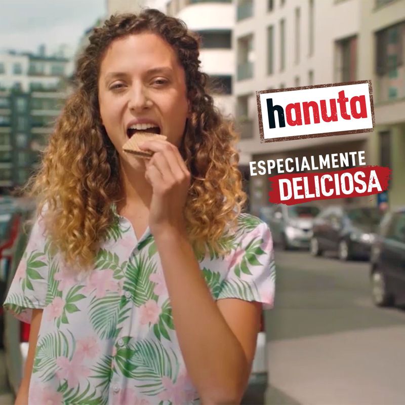 Delicie-se com Hanuta – o novo snack criado pela Ferrero, com toda sua especialidade na arte de fazer seus produtos. Hanuta combina dois waffers crocantes, recheados com um delicioso creme de cacau e pedacinhos de avelãs especialmente selecionadas. Hanuta, especialmente deliciosa. *Imagens meramente ilustrativas*
