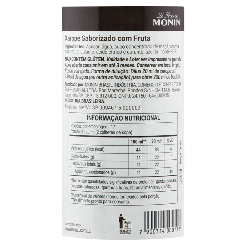 Xarope Monin Maçã-Verde Long Neck 330ml